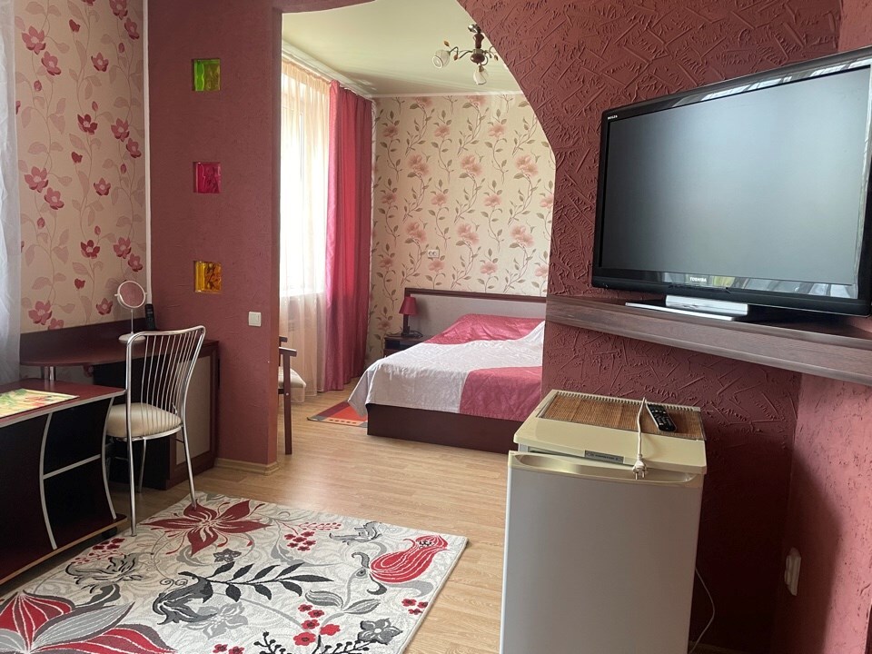 Двухкомнатный номер Люкс оснащен двуспальной кроватью, ванной комнатой, есть WI-FI. Есть Дополнительное место - раскладной диван.