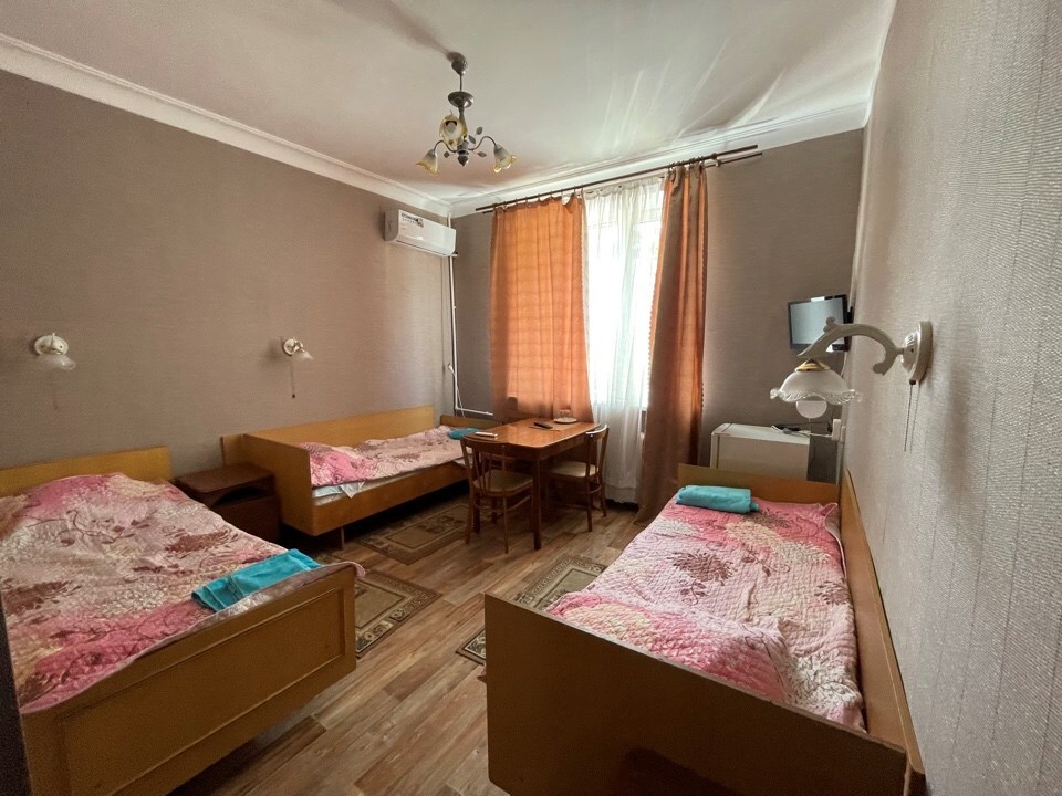 Трехместный номер оснащен тремя односпальными кроватями, ванной комнатой, есть WI-FI.