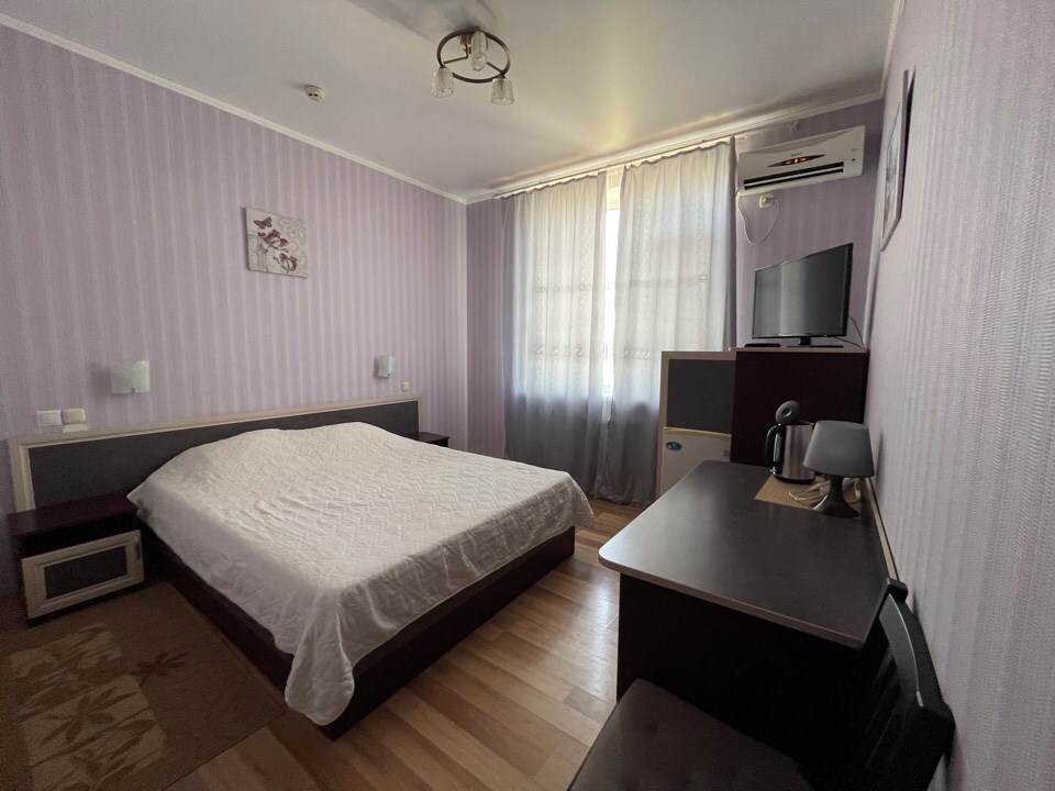 В номере: Посуда, Туалетные принадлежности, Прикроватная тумбочка, Стол, Стул/Стулья, Телевизор, Шкаф, Холодильник, Чайник, Кондиционер/Сплит-система, Кресло-кровать, Кабельное телевидение, Бесплатный Wi-Fi, Бутилированная питьевая вода, Ванная комната, Душ, Зеркало, Кровать двуспальная, Набор одноразовой косметики