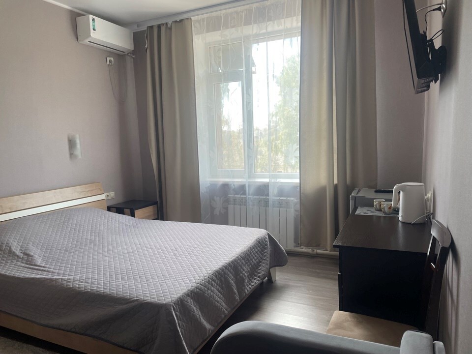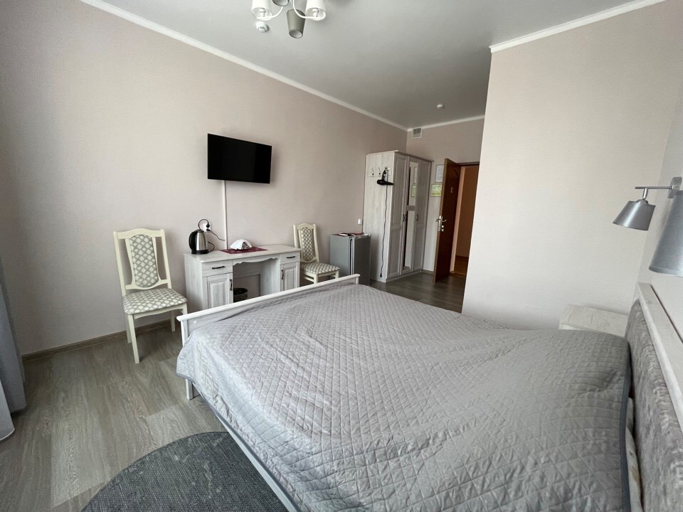 В номере: Бесплатный Wi-Fi, Ванная комната, Душ, Зеркало, Кабельное телевидение, Кондиционер/Сплит-система, Кровать двуспальная, Посуда, Прикроватная тумбочка, Стол, Стул/Стулья, Телевизор, Туалетные принадлежности, Бутилированная питьевая вода, Холодильник, Чайник, Шкаф