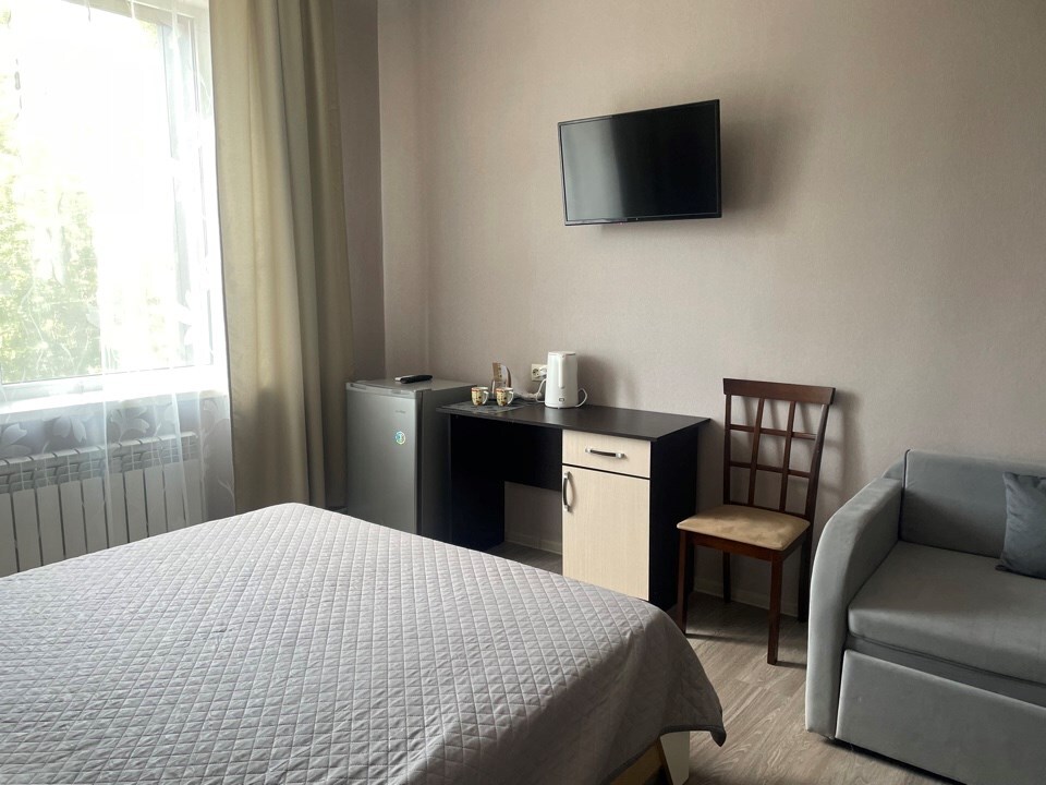 В номере: Кондиционер/Сплит-система, Телевизор, Бесплатный Wi-Fi, Диван-кровать, Душ, Туалетные принадлежности, Бутилированная питьевая вода, Ванная комната, Чайник, Зеркало, Кабельное телевидение, Кровать двуспальная, Посуда, Прикроватная тумбочка, Стол, Стул/Стулья, Холодильник, Шкаф